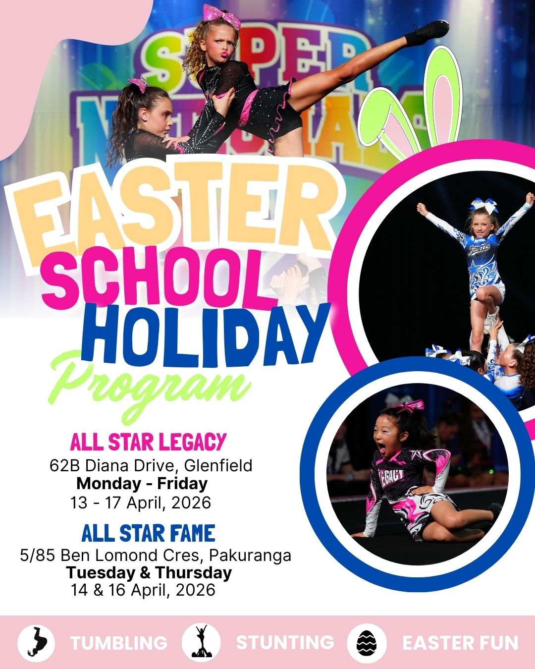 My daughters have learnt so much from the environment you have created. We really appreciate it and they recognise the skills and opportunities that cheer has provided them. Especially compared to their non-cheer friends. Cheer has not only given them physical fitness and abilities it has taught them what being part of a team means and how to lose and win well